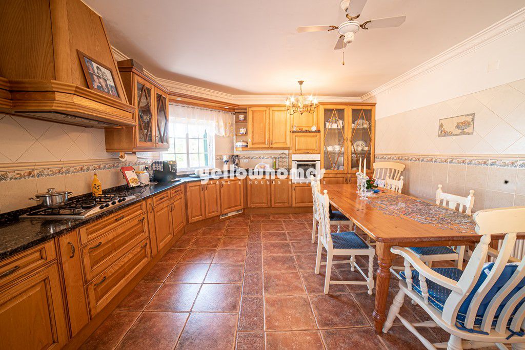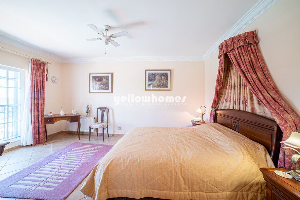Located near the picturesque village of Boliqueime and just a few minutes drive from the marina of Vilamoura and the golden beaches of Falesia, sits this 4 bedroom detached villa. The south facing 2 storey villa, which was built in 2001, the ground floor comprises of an entrance hall, a large living room with open fireplace, a snug/TV room with a wood burning stove, 2 en suite bedrooms with fully fitted wardrobes, a large fully fitted and equipped country style kitchen with dining table, a separate utility room and internal access to the single garage. The first floor of the villa has a landing, which could be used as an office area and the master bedroom suite which has a large dressing area, an en suite bathroom with walk in shower and a adjoining childs bedroom. The villa benefits from double-glazing, aluminium security shutters, water softener, air-conditioning and gas central heating. Water is from the mains as well as a private borehole. The outside has a covered dining area and an open courtyard with BBQ, a saltwater swimming pool with cover, a feature fountain and rockery, an abundance of various fruit trees and an electric entrance gate that leads to plenty of parking areas and a carport. A well thought out layout designed with both winter living and summer living in mind, this villa will make an ideal permanent residence. Energy certificate class C.