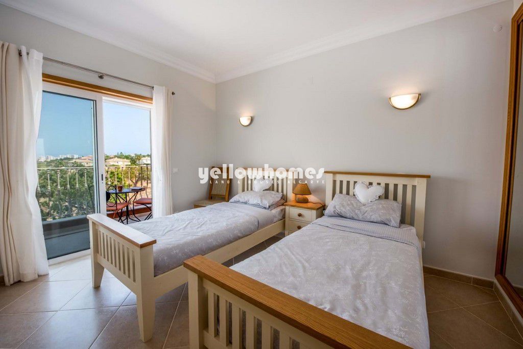 This modern and bright property with 2 bedrooms and views to the golf course is conveniently set in the western Algarve near Lagos. Enjoy the advantages of this renowned Golf & Spa Resort close to the heart of Lagos and get to know the historic old town with many nice cafes, bars and restaurants and the award winning marina. Also the famous seaside resort of Praia da Luz with its sandy beaches is close by. All Apartment owners receive special golf discounts and have access to the resort facilities such as the pool, indoor pool, spa and restaurants. The friendly ground floor apartment has an open plan living, dining and kitchen area. The kitchen is fully fitted and equipped and has a breakfast bar. The two bedrooms each have a modern bathroom - one with a bathtub, the other with shower. Large sliding glass doors open to the balcony at the bedrooms and to the terrace in front of the living area and to the garden overlooking the golf course. The air conditioning system provides freshness on hot days in the Algarve. The apartment was built in 2009.