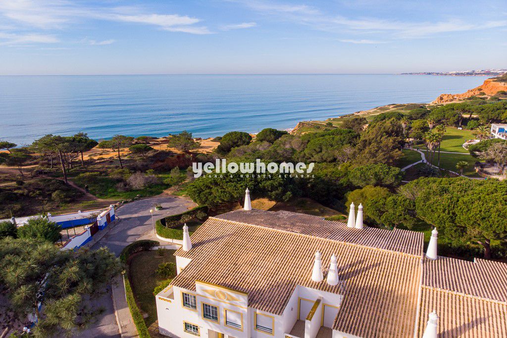 Exclusive Sale: The immaculate presented, fully furnished property is part of a small, private condominium with pool between Vilamoura and Albufeira in the Algarve. It is amazingly set just a stone throw away from the beach and with beautiful sea views. The corner house consists of 3 levels, the ground floor is composed of an entrance hall with cloak room, a fully furnished and equipped kitchen with breakfast area and pantry, and a large and bright living dining room with fireplace and access to good size covered terrace. The 1st floor is composed by 3 double bedrooms and 2 bathrooms (1x en-suite). All bedrooms have fitted wardrobes/ dressing areas and 2 of the bedrooms have access to terraces enjoying beautiful sea views of the near Atlantic. An internal staircase leads to the basement which consist of a very spacious and private garage with automatic doors. The south/west facing terrace in the ground floor offers a fitted BBQ, perfect for outside dining. The terrace gives access to the well maintained communal garden with large lawn areas and a good size pool with shower. The impressive cliffs of the Falesia beach are only a stone throw away as well as the Atlantic ocean. The property is equipped with air conditioning, double glazed windows and electric shutters and has ceramic floor tiling in a creamy colour or laminate flooring. This is an absolutely unique opportunity to own an easy to maintain property so close to the beach in a sought after location. This house would make a perfect holiday residence or could be a fantastic rental property. Exclusive sale. Contact us!