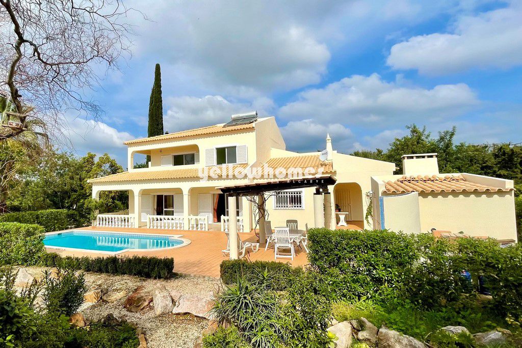 This south-facing property set on a large plot of land and 5 bedrooms in total is conveniently located in a quiet residential area near Boliqueime and close to Vilamoura and the beaches of the central Algarve. Sole agent now for sale at Yellow Homes-Land & Houses Algarve!The spacious and completely fenced property with over 4,000m2 benefits from a beautifully landscaped garden offering lots of privacy, an orchard and a private tennis court. The villa itself consists of 2 levels, the ground floor is composed by an entrance area, a fully furnished and equipped kitchen with separate exit, a small storage room and a bright, open plan living-dining room with fireplace and access to the large covered terrace. There are also 1 bedroom with bathroom en-suite and 2 further bedrooms sharing another bathroom on this level. The 1st floor consists of 2 further bedrooms, 2 bathrooms (1x en-suite) and a balcony with wonderful views over the garden towards the sea. The well maintained exterior offers a covered sitting area with a barbecue area and beautiful views over the garden and the pool (with outdoor shower). Another highlight is the private tennis court! An attractive property in an excellent residential area and only a short drive away from all amenities, the fine sandy beaches, the famous marina of Vilamoura and the wonderful golf courses. An excellent opportunity to acquire a holiday home in the sunny south of Portugal! Sole agent - book your viewing!